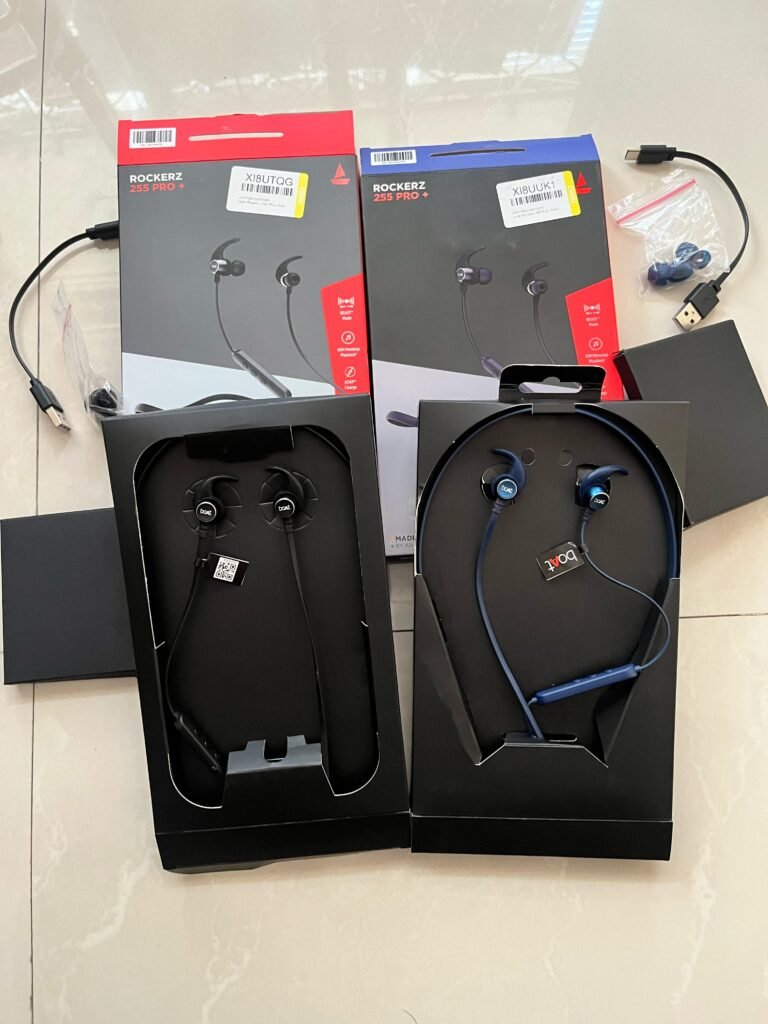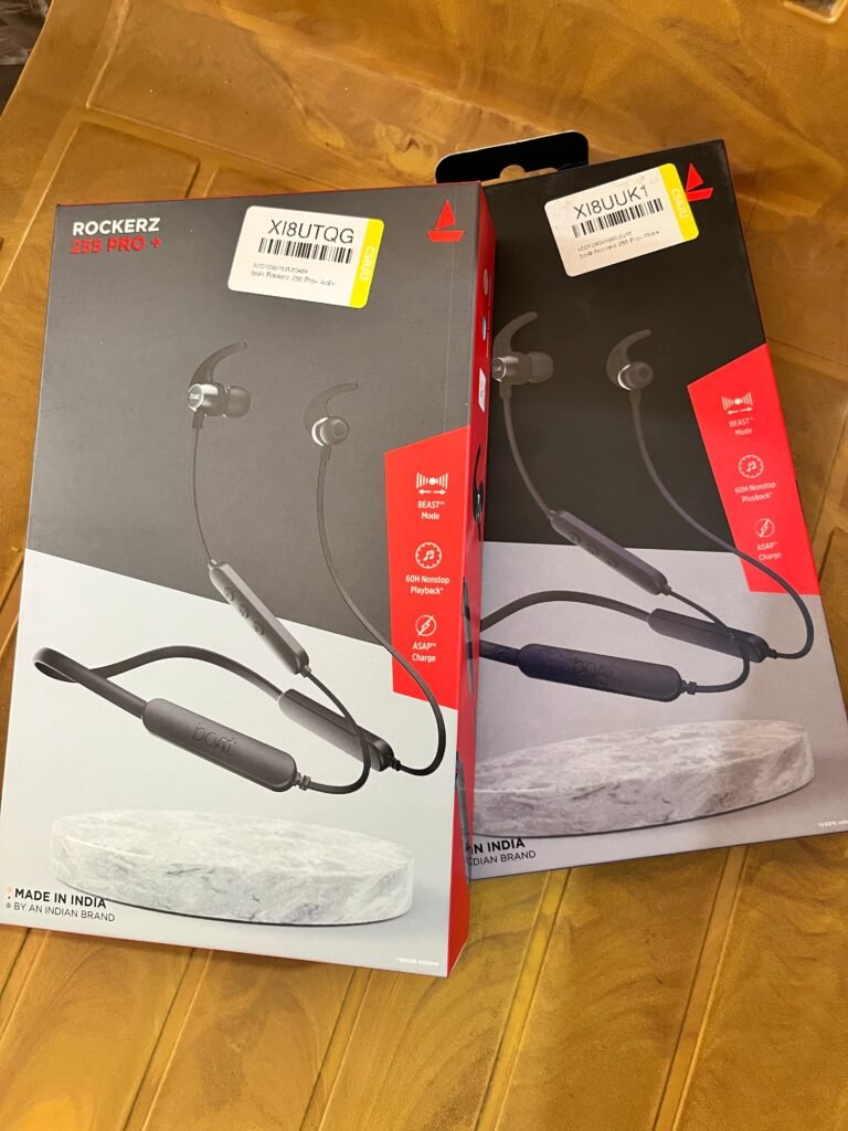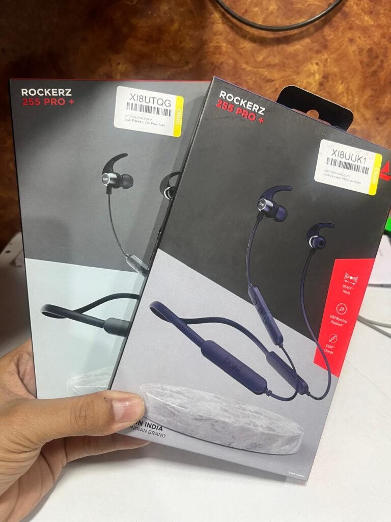 boAt Rockerz 255 Pro+ is a power-packed in-ear wireless neckband headphone that has been ergonomically designed to meet the needs of music lovers. The headphones come equipped with Bluetooth V5.0 for instant wireless connectivity. Its super powerful 300mAh battery provides a humongous playtime of up to 60 hours for an extended audio bliss. Its 10mm dynamic drivers help supply superior musical experience to the user with immersive sound. With our ASAP fast charge technology, you can get the headphones fully charged in just 60 minutes. It also offers resistance against water and sweat with IPX7 rated premium build. One can control the playback and calls easily via the provided multifunction controls and even summon respective smart Voice Assistant. Get ready to get enthralled by the pumped up audio and soaring vibe of Rockerz 255 Pro+